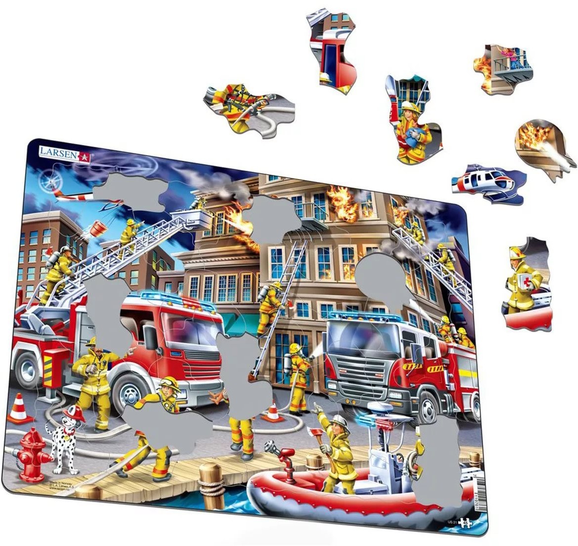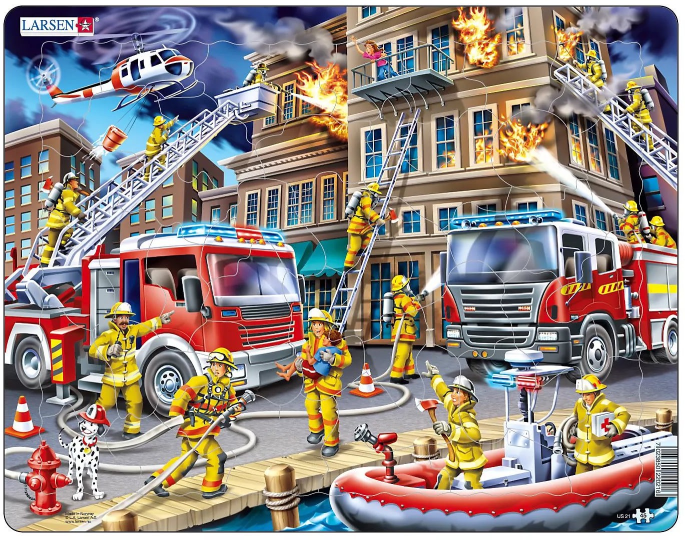 Larsen Пазл «Пожарные» (45 элементов)-20% +158 плотный картон реалистичная картинка легко собирается необычные формы для 4 лет