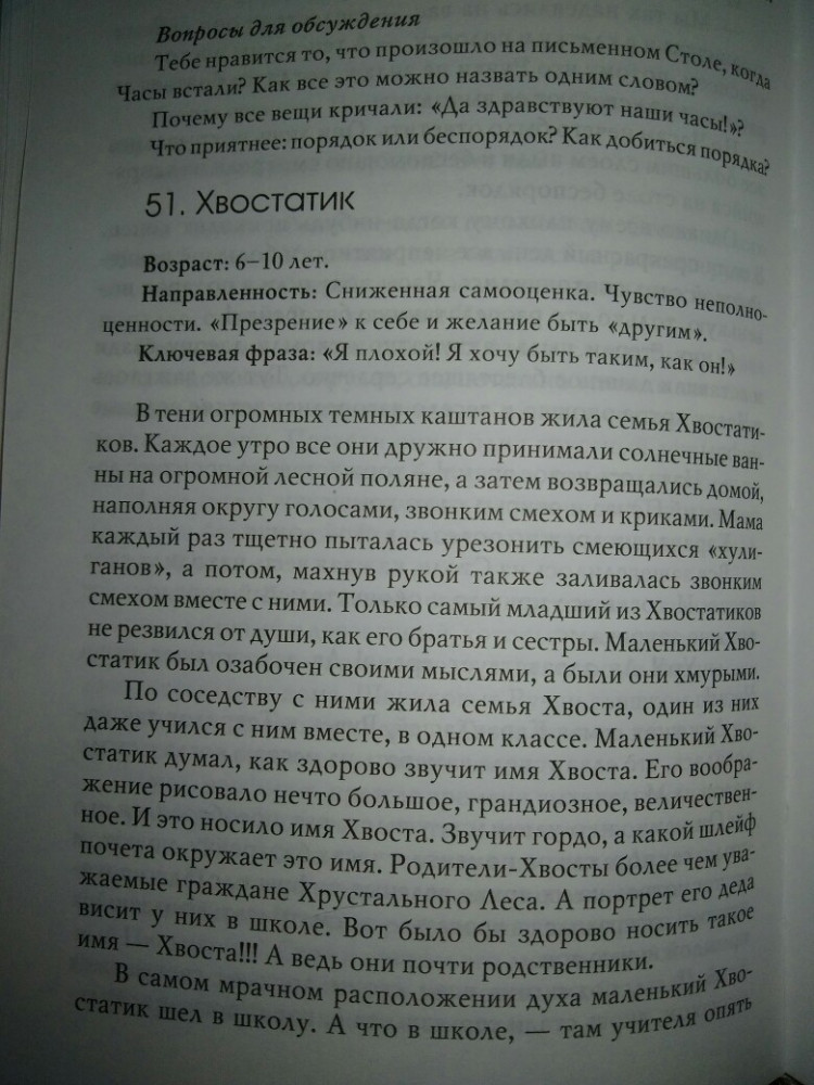 Замечательная книга, с очень добрыми историями про детские страхи, пониженную самооценку, неуверенность в себе, трудности в общении со сверстниками и родителями, трудности в учебе и т. д. Каждая сказка находит ответы на разные проблемы ребенка. Я читаю все сказки по порядку, не опираясь на возраст, (моему ребенку 10 лет) Мамочки и бабушки, кто читает деткам перед сном, обратите внимание на эту книгу, очень советую 👍 оставлю один рассказ для примера