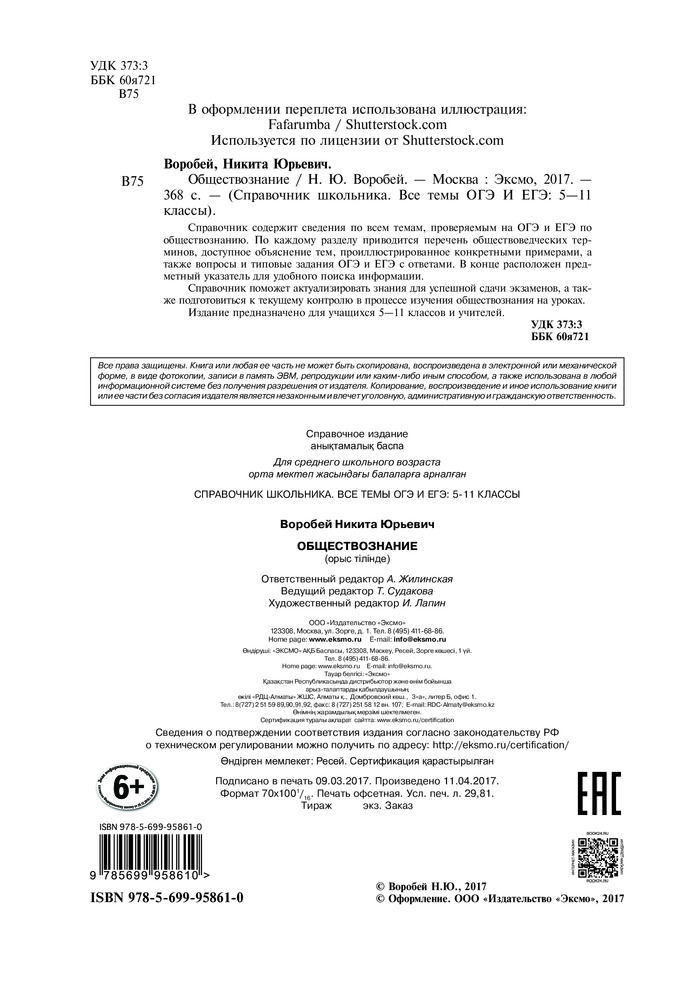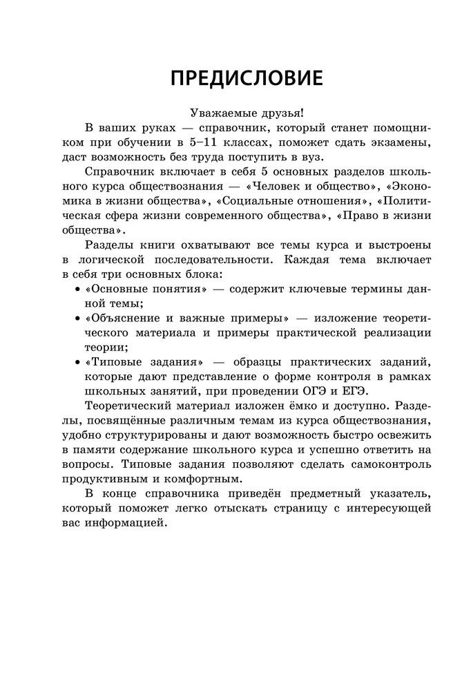 Обществознание. 5-11 класс. Справочник школьника. Все темы ОГЭ и ЕГЭВ данный момент этот товар отсутствует в продаже. Возможно, у нас найдется аналогичный или похожий товар здесь. Серия: Справочник шк. Все темы ОГЭ и ЕГЭ 5-11кл Справочник содержит сведения по всем темам, проверяемым на ОГЭ и ЕГЭ по обществознанию. По каждому разделу приводится перечень обществоведческих терминов, доступное объяснение тем, проиллюстрированное конкретными примерами, а также вопросы и типовые задания ОГЭ и ЕГЭ с ответами. В конце расположен предметный указатель для удобного поиска информации.Справочник поможет актуализировать знания для успешной сдачи экзаменов, а также подготовиться к текущему контролю в процессе изучения обществознания на уроках. Издание предназначено для учащихся 5-11 классов и учителей. |