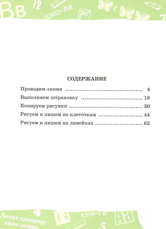ПисьмоВ данный момент этот товар отсутствует в продаже. Возможно, у нас найдется аналогичный или похожий товар здесь. Серия: Скоро в школу Настоящая книга поможет развить мелкую моторику и координацию руки ребенка — научит его проводить линии, выполнять, штриховку разных видов, копировать рисунки, рисовать и писать по клеточкам и на линейках. |