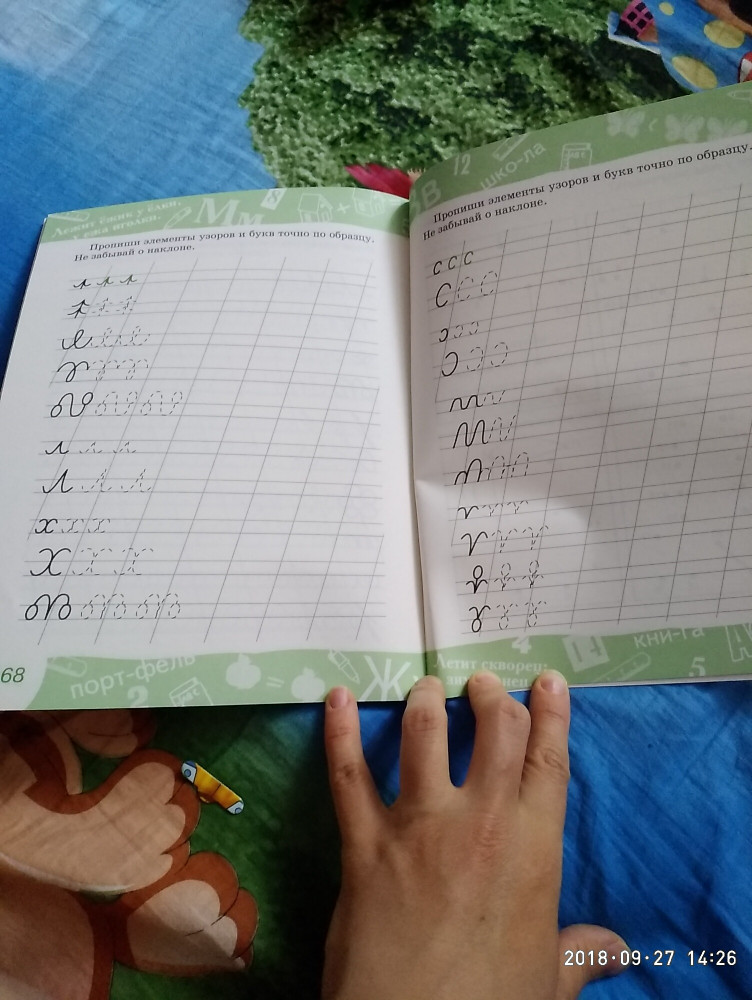 Тетрадь хорошая. Брала на будущее. Очень много примеров письма