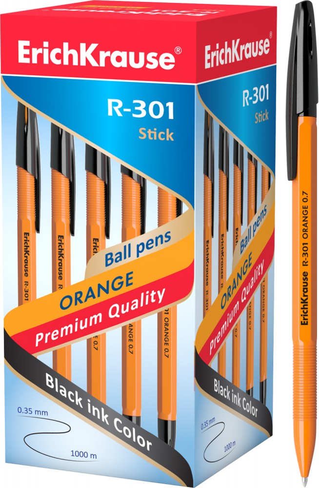 Erich Krause Ручка шариковая R-301 ORANGE 0.7 Stick (черный)-20% +4