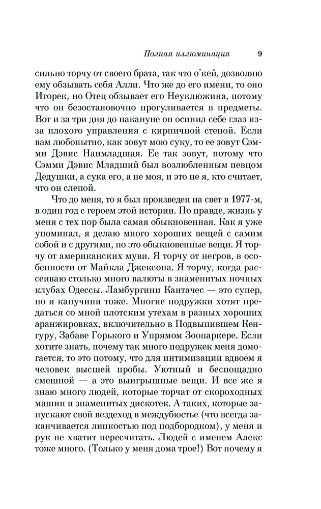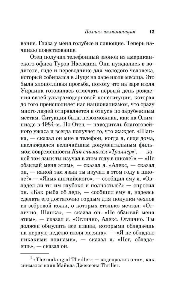 Полная иллюминацияВ данный момент этот товар отсутствует в продаже. Возможно, у нас найдется аналогичный или похожий товар здесь. Серия: Культовая классика в крафте «Юмор — это единственный правдивый способ рассказать печальный рассказ», — утверждает Джонатан Фоер устами своего героя. В печально-смешном путешествии двух подростков — американца и украинца — сплелись воедино события Второй мировой войны, традиции еврейского народа и взгляд на современную молодежь, которая за цинизмом и бахвальством скрывает свои по-детски тонкие, ранимые души... Книга, которую трудно пересказывать, но хочется цитировать и перечитывать. |