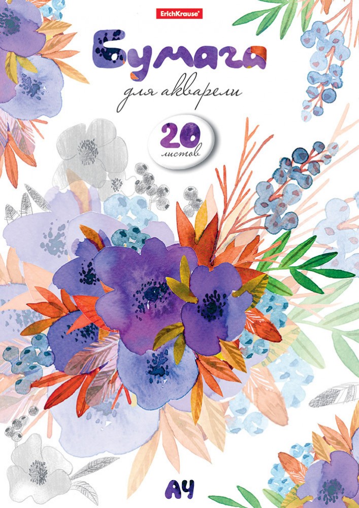 Erich Krause Альбом для рисования с акварельной бумагой «Нежный букет» (20 листов)-20% +23 набор качественный дети довольны удовлетворенность клиента цвет размазывается плохие переходы