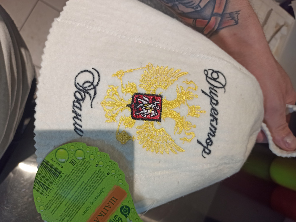 Банные штучки Шапка «Директор бани»-20% +62 швы ровные плотная ткань размер подошёл без запаха