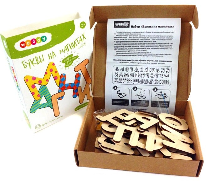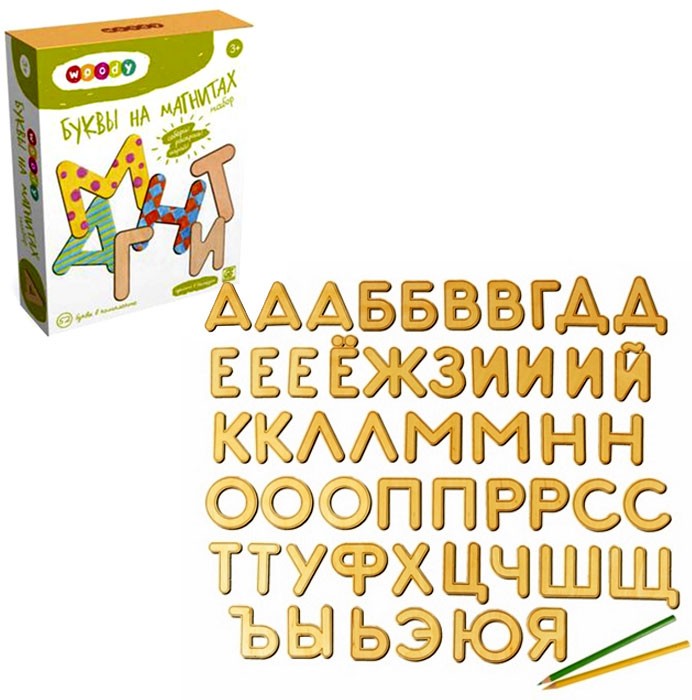 Woody Набор деревянных букв на магнитахВ данный момент этот товар отсутствует в продаже. Возможно, у нас найдется аналогичный или похожий товар здесь. С помощью такого набора ребенок научится различать буквы, складывть их в слоги, а потом и в слова. В зависимости от частоты употребления, некоторые буквы дважды или трижды дублируются. Учеными доказано, что информация лучше воспринимается при воздействии на несколько органов чувств: зрение, слух, тактильные ощущения. Именно эти каналы восприятия и задействуются при игре с буквами на магнитах - ребенок видит букву, слышит, как она звучит (голос родителей) и ощущает ее форму. Что важно, ребенок так же развивает творческое мышление, раскрашивая деревянные фигурки. |