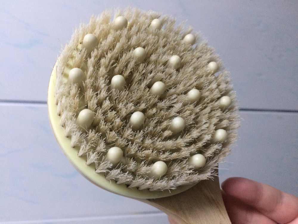 Удобная ручка, хорошо лежит в руке. Ворсинки не такие густые как кажется на фото и еще они очень жесткие. Подойдет для тех кто любит грубые мочалки. Но, существенный минус в том, что ворс сильно выпадает, думаю через 7-10 использований щетка окончательно "облысеет"