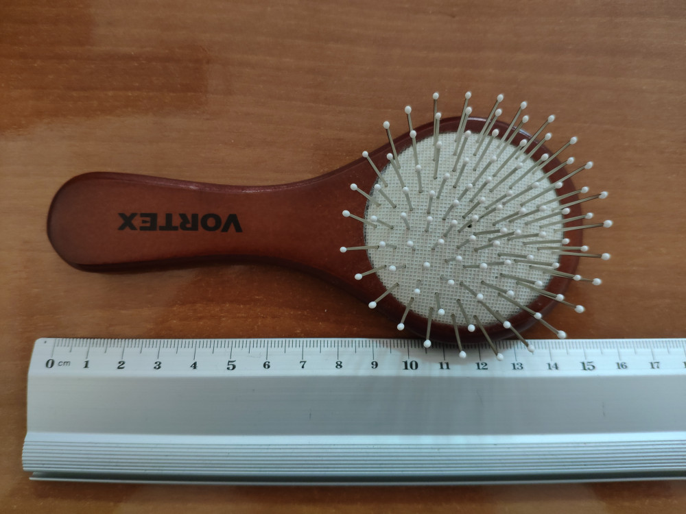 Расческа величиною в ладонь. Хорошо массажирует. Стильная, уютная, эргономичная.