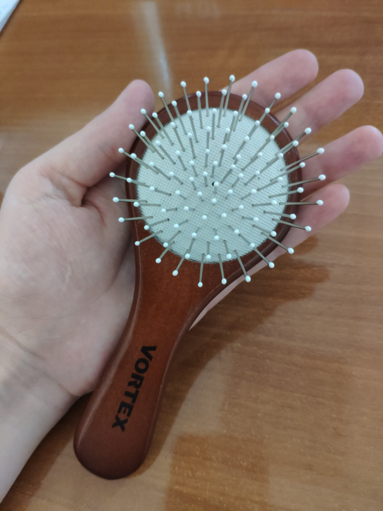 Расческа очень понравилась. Волосы не электризует (хотя у меня тонкие волосы и электризуются они от всего), деревянная ручка очень удобная и приятна на ощупь, сама расческа миниатюрная, поэтому удобно носить её с собой. Купила из этой же серии большую массажную расчёску, тоже очень ею довольна)