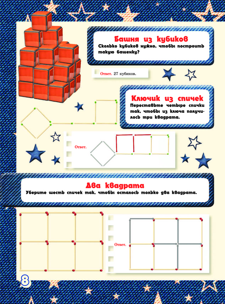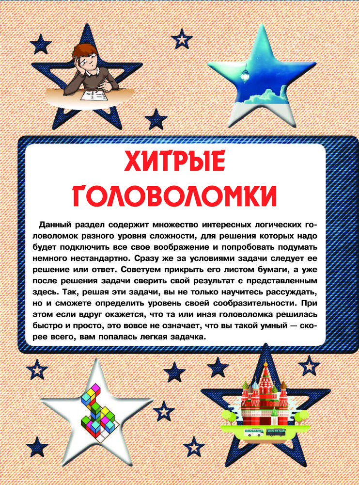 Книга действительно большая. Интересная. В последнем разделе оптические иллюзии, самой было интересно. Сын любит математику, а здесь как раз нужно пошевелить мозгами. Единственный минус то, что под заданием сразу есть ответ. Лучше бы они были в конце, давая возможность подумать, а не сразу увидеть решение. К магазину претензий нет. Как всегда на высоте. Спасибо.