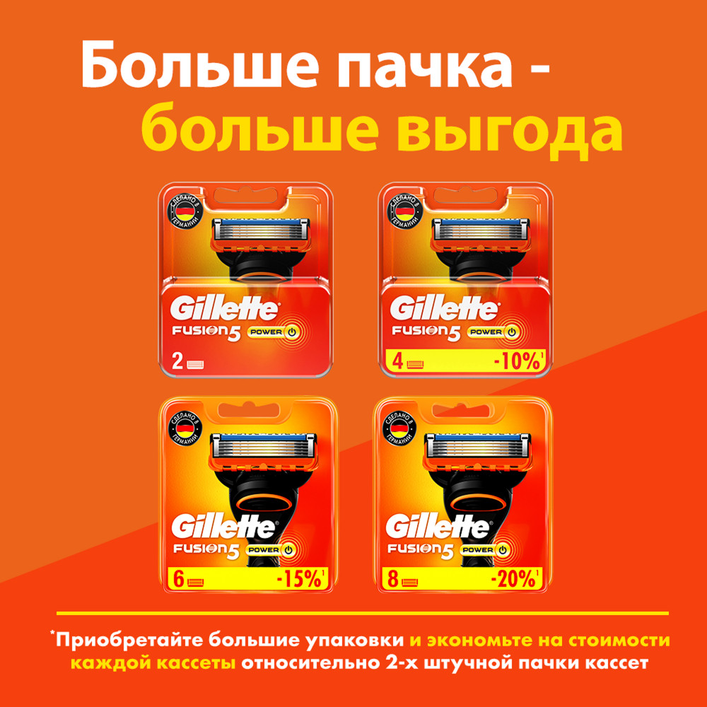 Gillette Сменные кассеты для бритья Gillette Fusion Power-8% +190