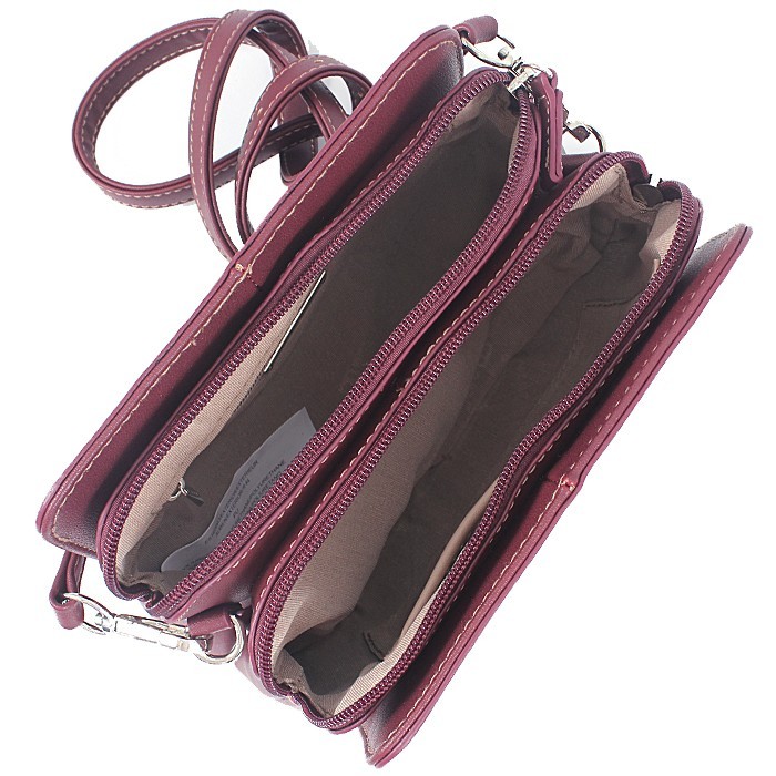 Хорошая сумка, удобно носить через плечо. Входит большой кошелек (19 см), сотка, ключи.