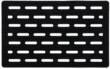 Коврик понравился - хорошо вписался в интерьер прихожей, как раз по ширине порожка у двери. Черный цвет коврика и черные косяки входной двери отлично сочетаются. Продольные дырки в коврике тоже к месту - нет сплошного черного пятна на полу, в дырках просвечивает пол и тоже как бы получается гармония по цвету. Ворс жесткий, плотный, достаточно высокий, грязь и пыль частично проваливается в дырки, что тоже понравилось.