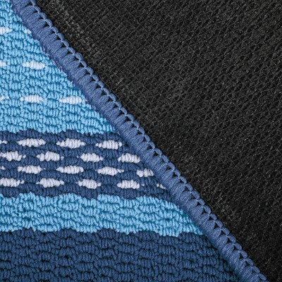 Мне коврик понравился. Обратная сторона тонко прорезинена, не скользит.