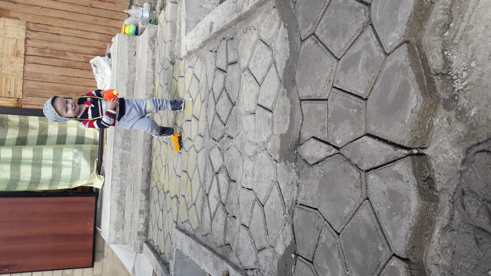 В первый раз работала с цементным раствором. Делала дорожки с детьми, поэтому не всегда получалось гладко выровнять. Теперь вошли во вкус! Целый день бы только и заливала такую красоту!!!!)))