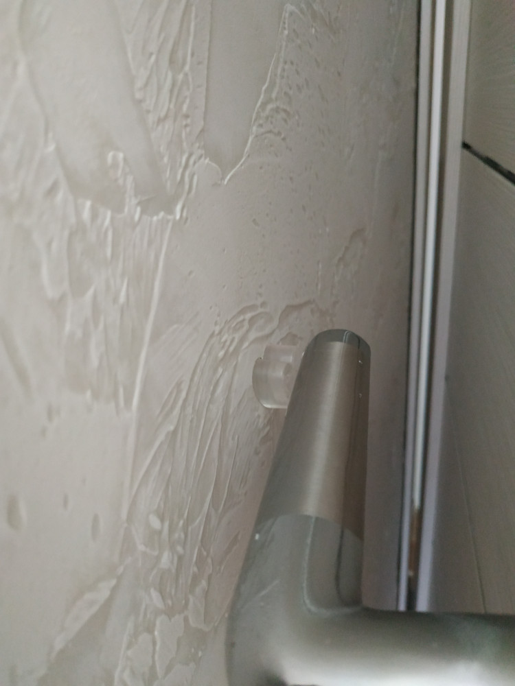 Ручка двери упиралась в холодильник. Приклеила стопор, пока все нормально. Дверь мягко амортизирует. Хорош в тех случаях, где нет возможности прикрепить стопор на пол. Например, на кухне у меня плитка. Мне понравилось.