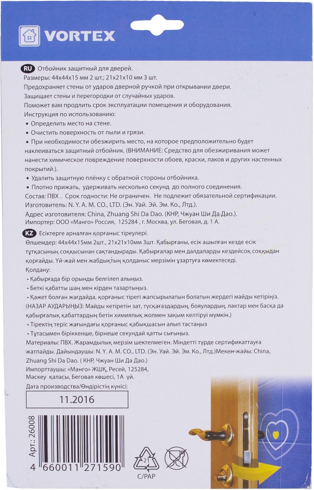 VORTEX Отбойник защитный для дверей (5 штук)В данный момент этот товар отсутствует в продаже. Возможно, у нас найдется аналогичный или похожий товар здесь. Отбойники для дверей предохраняют стены от ударов дверной ручки во время открытия двери. |