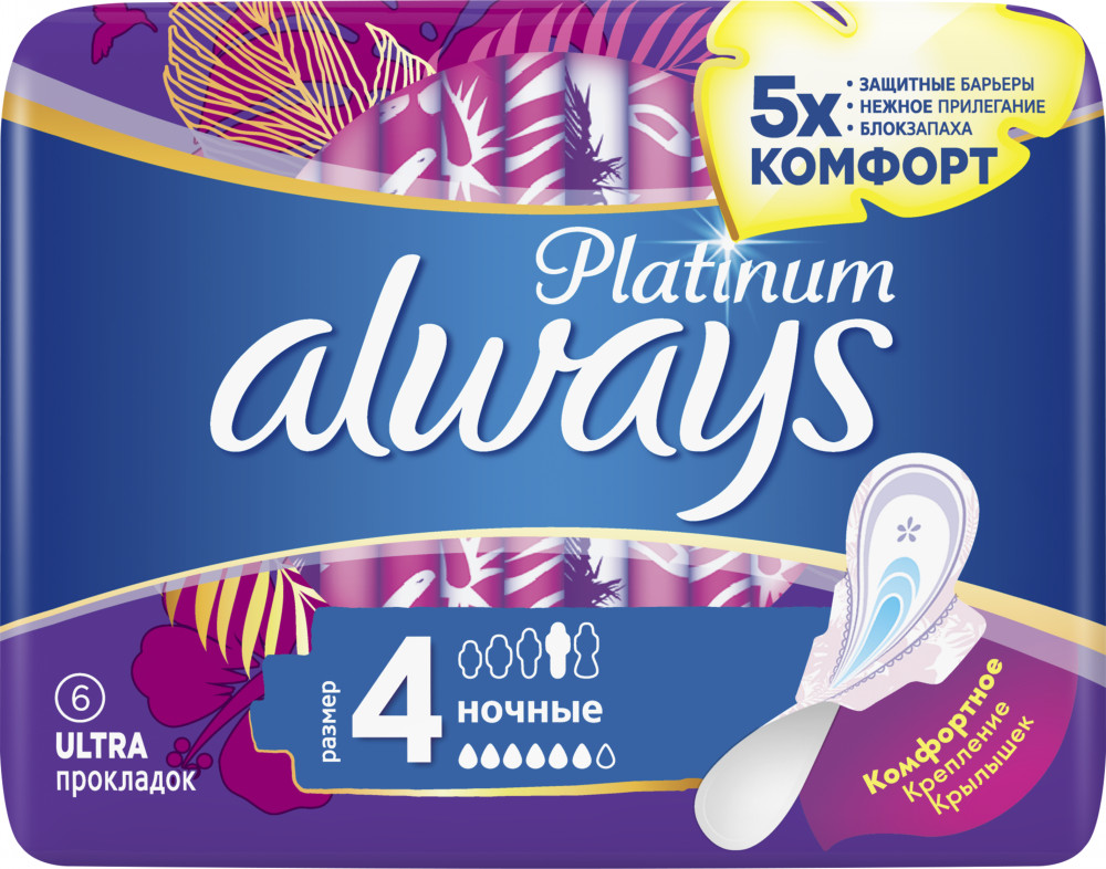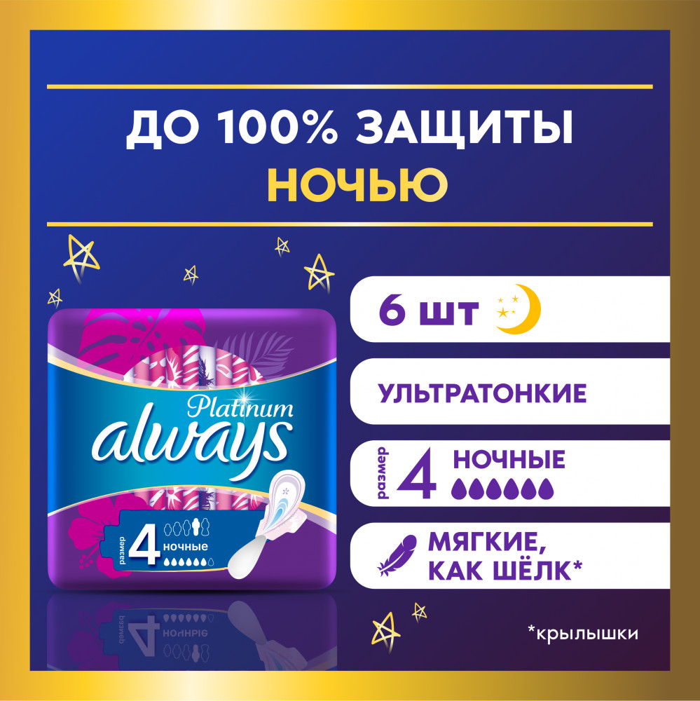 Always Женские гигиенические прокладки Platinum Collection Night Single 6шт