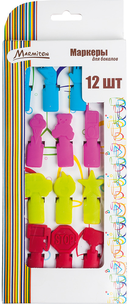 Разноцветные маркеры для бокалов «Marmiton», выполненные из силикона, всегда будут желанными гостями на вашей вечеринке. Они легко крепятся к бокалу и просто снимаются не оставляя следов.