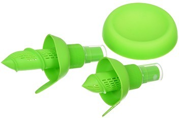 В состав входит два клапана, которые используются в простейших пульверизаторах, и подставка. Клапаны имеют разные размеры для использования с цитрусовыми различных диаметров.