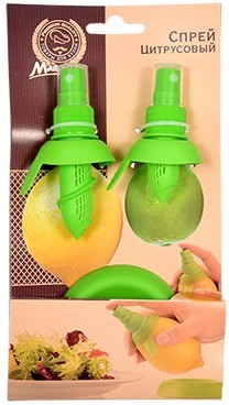 Способ применения: срежьте верхнюю часть плода и ввинтите в мякоть один из клапанов. Уникальный цитрусовый спрей готов! Теперь достаточно одного легкого нажатия пальцем, и ваши блюда дополнятся ароматом натуральных цитрусовых фруктов! |