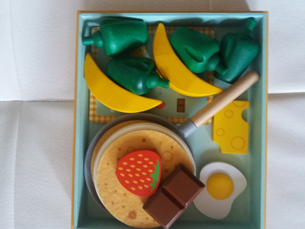 Купили эту игру 3 года назад, когда доче было 3 года, и все 3 года, она у моей дочки одна из самых востребованных игр, да детали небольшие, но сделано все настолько аккуратно и красиво, что хочется возвращаться к ней вновь и вновь. Мы еще дополнили ее бананами и перчиками, которые тоже купили в этом замечательном магазине. И блинчики, и салатик, десерт получается! Жаль, что в ассортименте есть только перчик и банан, были бы другие овощи-фрукты, обязательно докупили бы. Спасибо Fkip.kz!