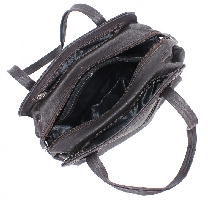 Сумка удобная, мне нужна была такая, чтобы вешать на плечо. Цвет темный, почти черный, кожа хорошая, сама легкая, отделения-три, внутри еще посередине на молнии и карманы, в общем полный комплект. Очень довольна, пошита качественно.