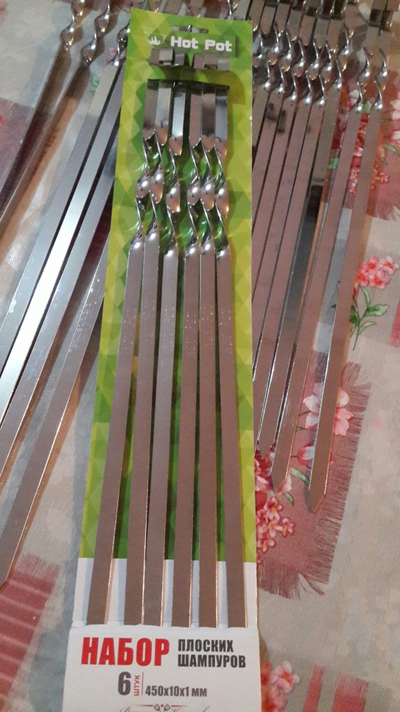 Hot Pot Набор плоских шампуров (45 см; 6 штук)В данный момент этот товар отсутствует в продаже. Возможно, у нас найдется аналогичный или похожий товар здесь. Набор плоских шампуров «Hot Pot» изготовлен из высококачественной стали с пищевым хромированным покрытием. Шампуры идеально подходят для приготовления шашлыков из мяса, рыбы, птицы и овощей. |