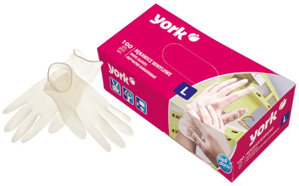 | YORK Перчатки одноразовые виниловые L (100 штук)