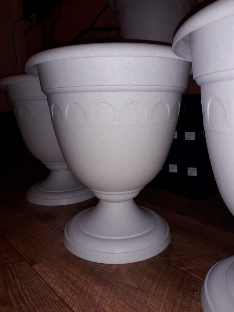 Вазон, как и ожидала, очень красивый, цвет под мрамор, матовый, пластик прочный, ножка снимается. Все вазоны можно сложить и они займут мало места, приобретался для посадки петуний, размер удачный, и не маленький и передвинуть не тяжело. Ну и, как всегда, в этом магазине товар со склада новенький, не покоцаный, в нужном количестве. Спасибо🤗.