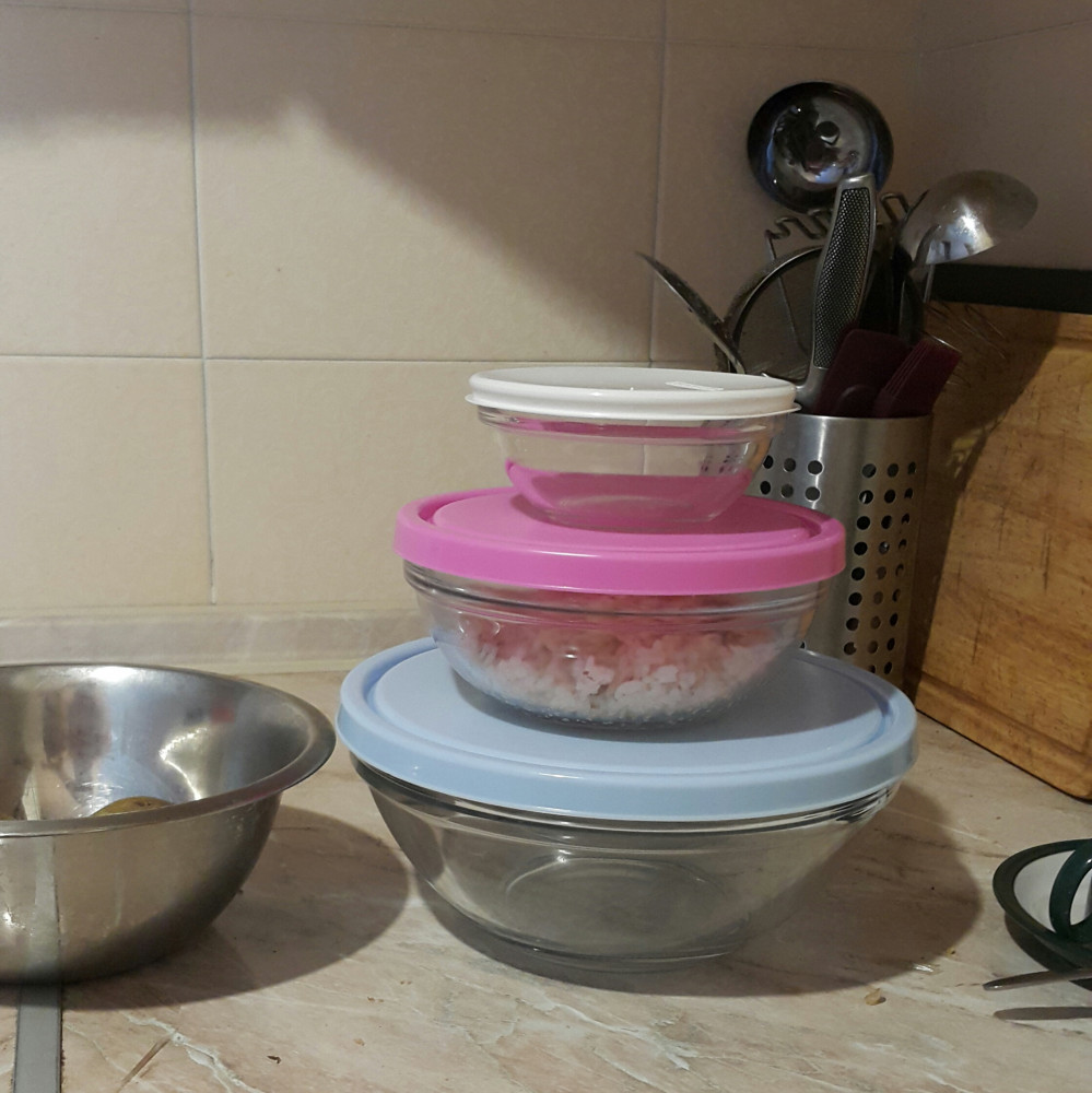 Удобные в использовании и принцип хранения "матрешек" позволяет экономить кучу места в шкафу, но почему-то крышки вздувается при закрытии, постоянно приходится приподнимать край и спускать воздух. Сами крышки белые, очень мягкие и смотрятся как-то "дешево", нет эффекта элегантности как обычно бывает, когда видишь посуду от Luminarc, но в целом все неплохо.