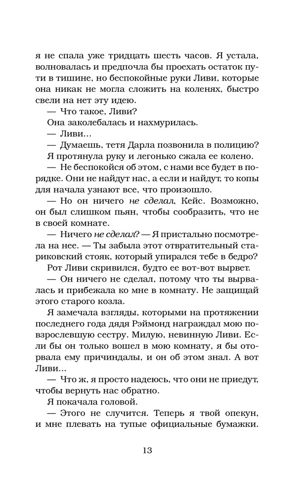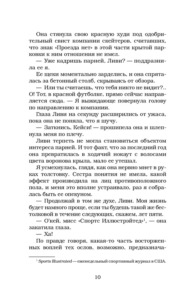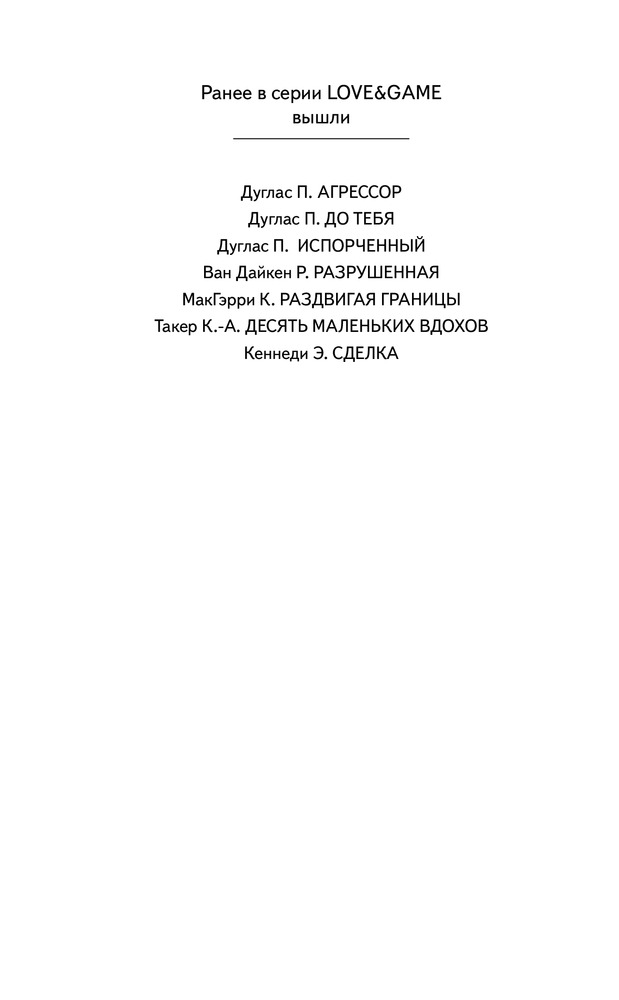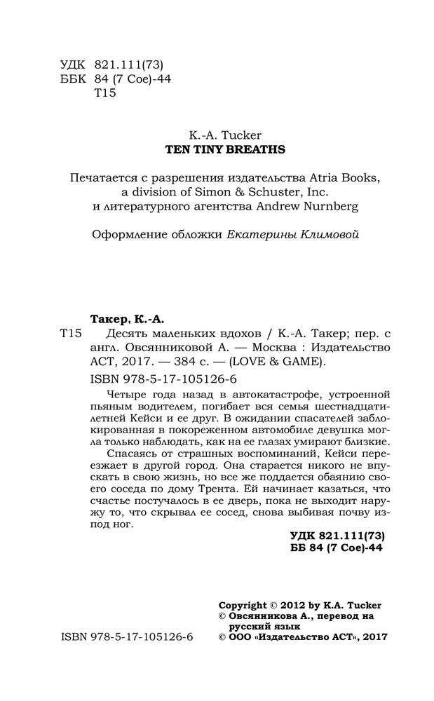 Десять маленьких вдоховВ данный момент этот товар отсутствует в продаже. Возможно, у нас найдется аналогичный или похожий товар здесь. Серия: Love & Game Четыре года назад в автокатастрофе, устроенной пьяным водителем, погибает вся семья шестнадцатилетней Кейси и ее друг. В ожидании спасателей заблокированная в покореженном автомобиле девушка могла только наблюдать, как на ее глазах умирают близкие. Спасаясь от страшных воспоминаний, Кейси переезжает в другой город. Она старается никого не впускать в свою жизнь, но все же поддается обаянию своего соседа по дому Трента. Ей начинает казаться, что счастье постучалось в ее дверь, пока не выходит наружу то, что скрывал ее сосед, снова выбивая почву из-под ног. |