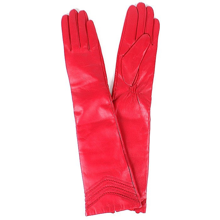 Прекрасные перчатки. Ярко-красного пожарного цвета, до локтя. Очень хорошо облегают руку.