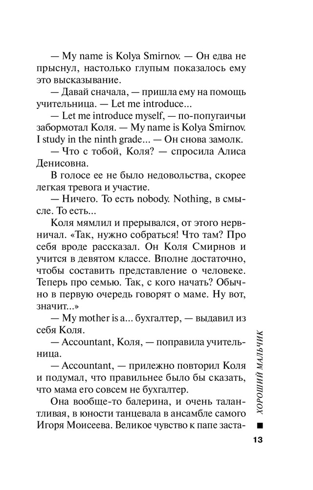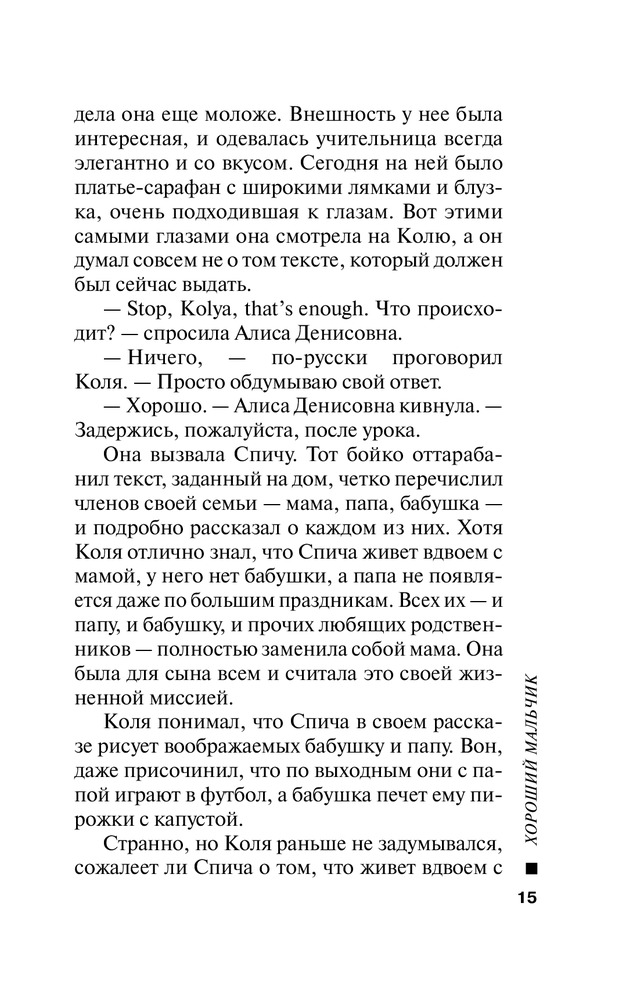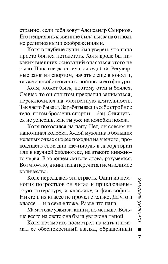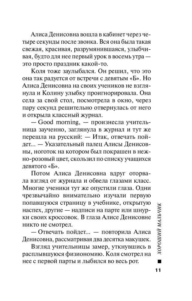 Хороший мальчикВ данный момент этот товар отсутствует в продаже. Возможно, у нас найдется аналогичный или похожий товар здесь. Серия: Хороший мальчик. К премьере лучшей кинокомедии года Добрая и веселая книга, прекрасно дополняющая блестящую одноименную кинокомедию. Здесь читатель может «посмаковать» забавные, смешные и анекдотичные фразы персонажей и погрузиться во внутренний мир героев, где бушуют настоящие страсти, драмы и любовные перипетии. Этот мир — школьников, родителей, учителей — наполнен Любовью, и это самый главный вывод, к которому приходит читатель, перевернув последнюю страницу романа. Ну а пока... пока в старшеклассника Колю Смирнова влюбляется дочь директора школы, но сам Коля просто тает при виде молоденькой учительницы английского. Может, именно эти горячие чувства и подожгли компьютерный класс? Впрочем, следователь думает иначе. И у Коли есть кое-какие соображения насчет злоумышленника... |