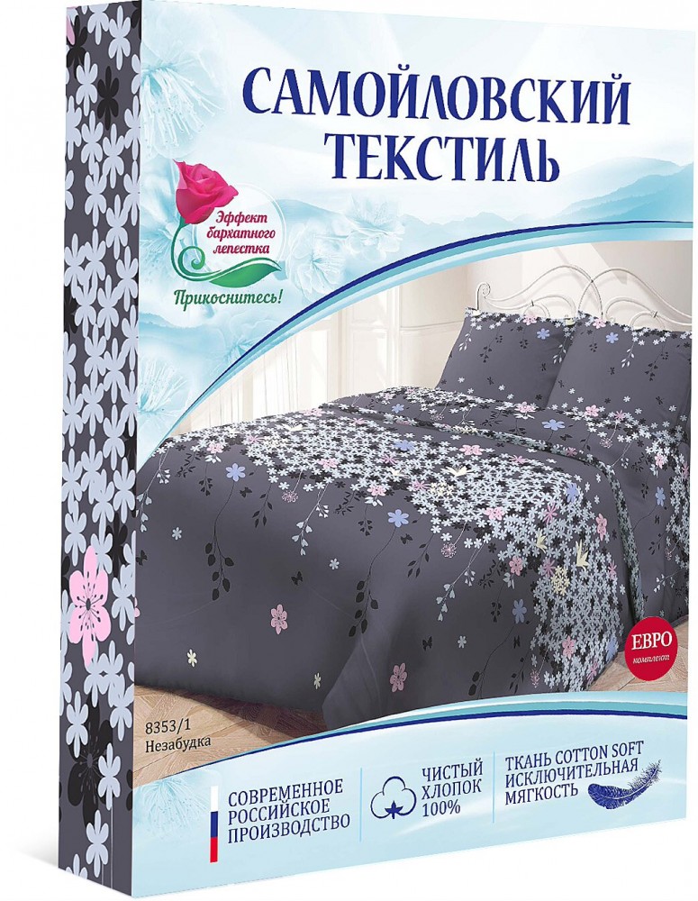 Самойловский Текстиль Комплект постельного белья «Незабудка» (евро, бязь, 2 наволочки 50х70)В данный момент этот товар отсутствует в продаже. Возможно, у нас найдется аналогичный или похожий товар здесь. Комплект постельного белья изготавливается из бязи COTTONSOFT - полотняная ткань из 100% хлопка, обработанная по специальной технологии. Ткань COTTONSOFT сочетает в себе все преимущества натуральной ткани: сохранение сухого тепла, отсутствие статического электричества, гигроскопичность и неприхотливость в уходе, и при этом она обладает чрезвычайно мягкой на ощупь поверхностью! |