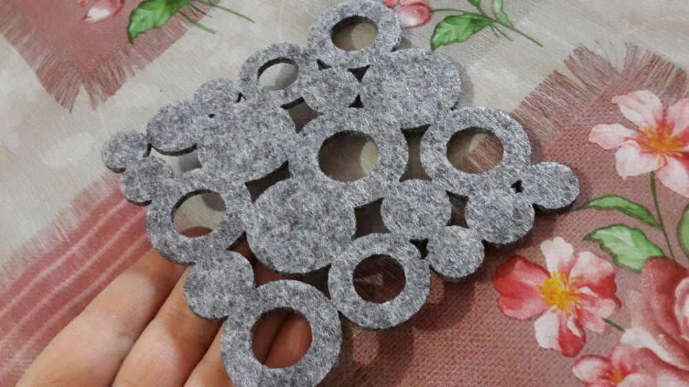Из фетра подставка хороша тем, что впитывает влагу моментально, удобно под кружкой, под бокалом держать.