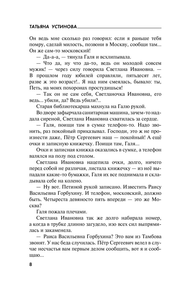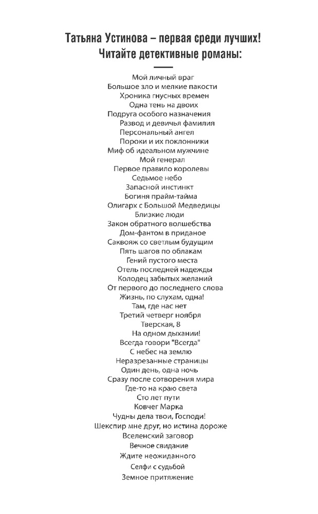 Для меня сюжет не такой захватывающий, как в других произведениях Т.Устиновой, но все равно прочла книгу с удовольствием.