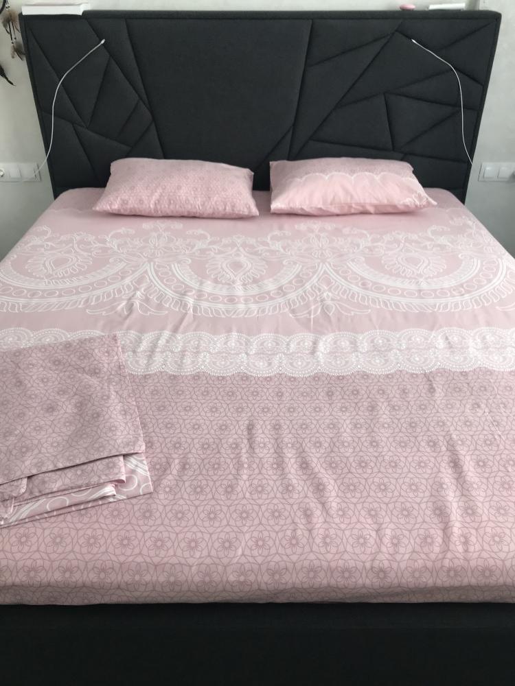 Комплект красивый, соответствует фотографии. Натуральный состав, качественно сшит. Но я убрала две звезды за то, что на нём почти не возможно спать. Ткань жёсткая, грубая и не приятная к телу😏