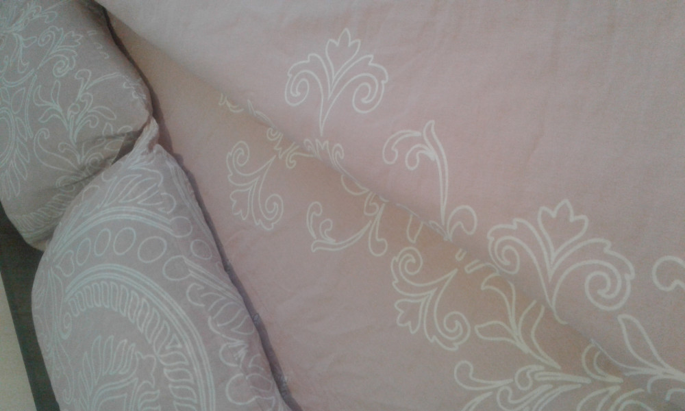 хороший комплект белья, понравился. Мягкий ,лёгкий и нежная расцветка. Рисунок такой же как на картинке, узоры на пододеяльнике и точно такие на простыне. На наволочках узоров нет, рисунок как внизу на пододеяльнике, но всё равно смотрится красиво. Цвет пудра, и аккуратно сшит, хорошо упакован. Соответствует цене. Спасибо flip!