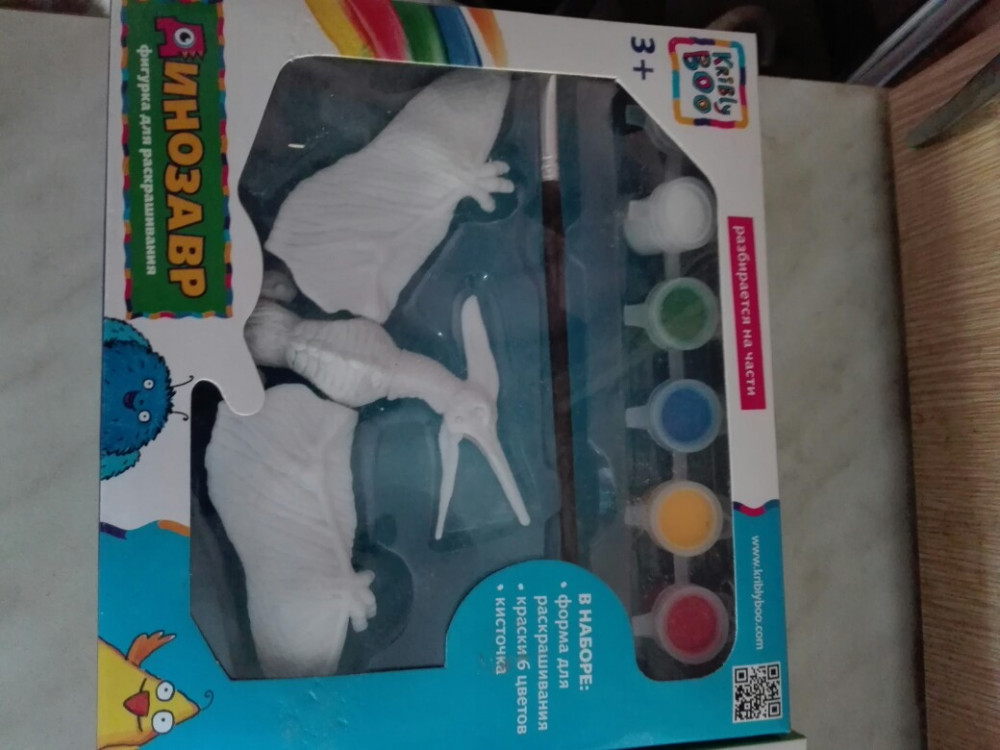 В очередной раз, благодарю flip.kz за возможность быстро и доступно приобретать товары! У динозавра двигаются все конечности, это здорово!!! Краски качественные + хорошо смываются с рук. Ребенок в восторге!