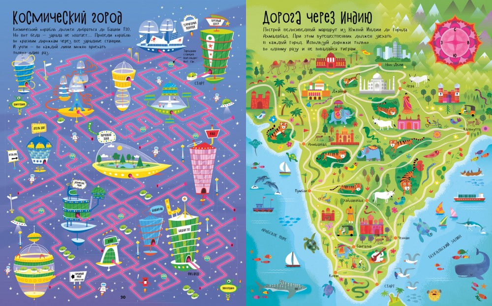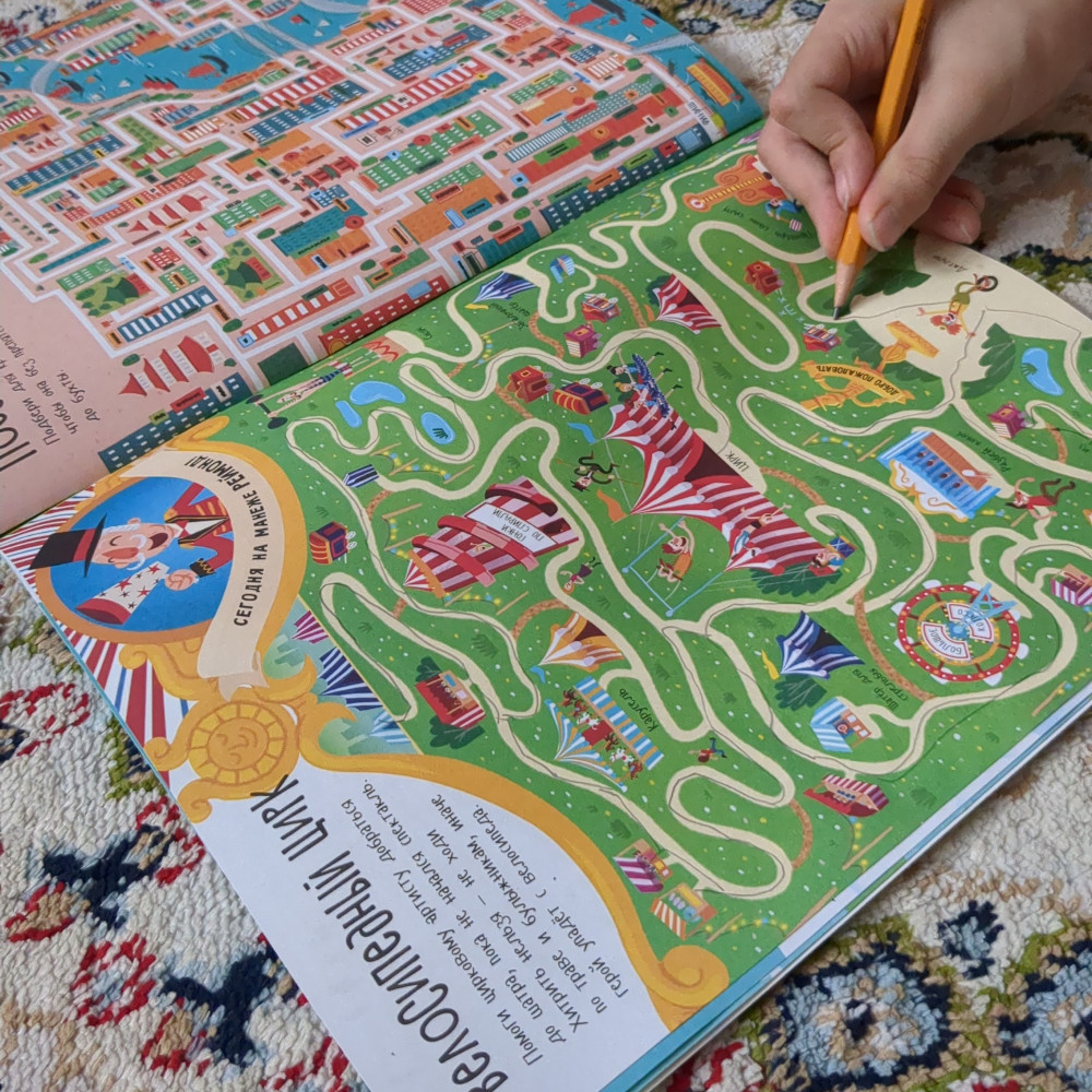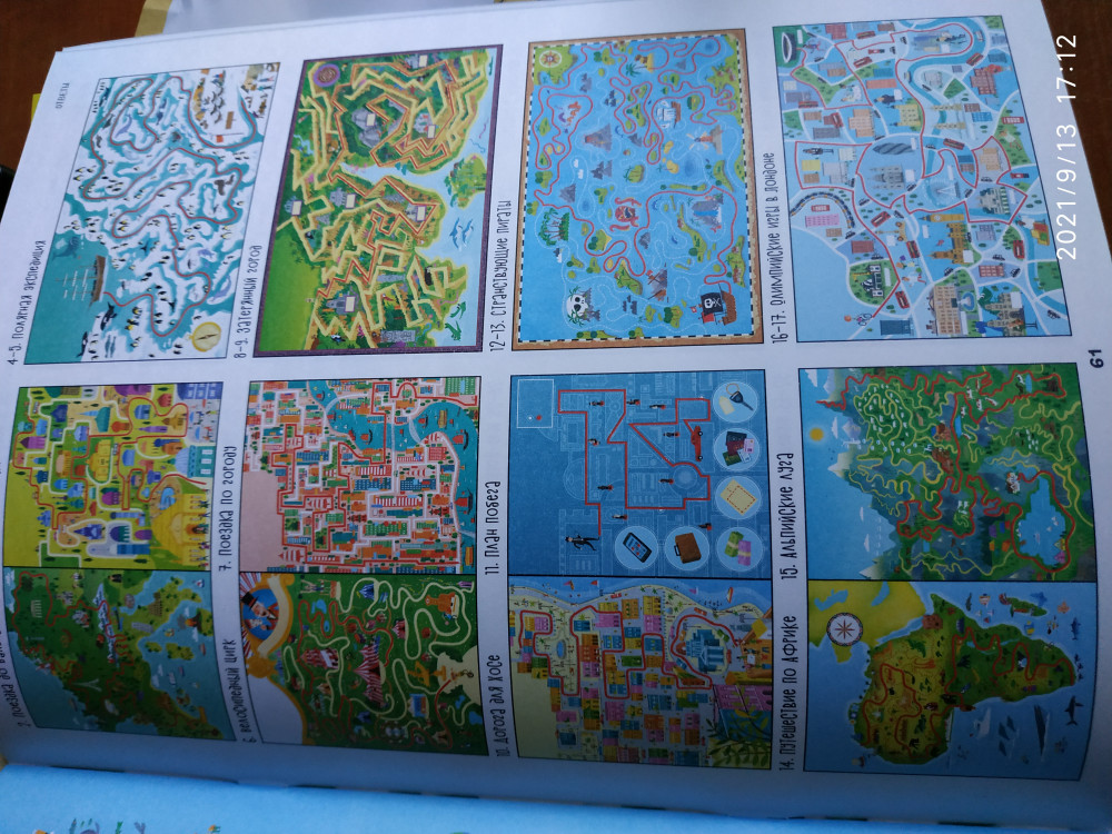 Купила книжку в подарок племяннику, он любит искалки и бродилки. Но, если честно, не знаю, как расстаться с этим чудом))) Отличное издание, хорошие плотные странички, они не глянцевые- прям как я люблю) Очень красочные лабиринты, очень интересные картинки, множество деталей, рисунки на высоте. В конце книжки есть правильные рисунки- ответы- ну если никак не удалось выбраться из лабиринта)) Если бы в моем детстве были такие книжки!