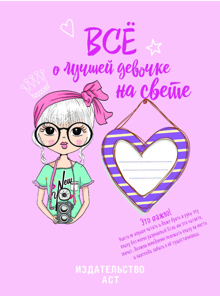 Эта книга о лучшей девочке на светеВ данный момент этот товар отсутствует в продаже. Возможно, у нас найдется аналогичный или похожий товар здесь. У тебя в руках очаровательный альбом, которому ты можешь доверить все свои самые сокровенные тайны, поделиться планами и мечтами, эмоциями и тёплыми воспоминаниями, вклеивая свои лучшие фотографии и отмечая важные даты и события. Создай целую историю о себе: опиши свои любимые увлечения и мероприятия, которые ты посещала, сделай страничку о моде и собственном стиле, заполни анкеты своих друзей. Кроме того, здесь тебя ждут интересные тесты, рецепты оригинальных блюд и советы по рукоделию. Этот альбом — настоящее сокровище для самой лучшей девочки, ведь с ним память о наиболее приятных моментах твоей жизни останется навсегда!Для дошкольного возраста. |