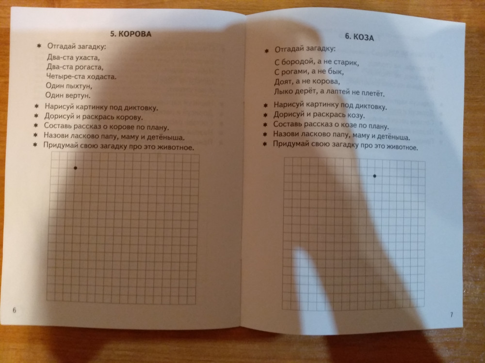 Думаю, ребёнку было бы легче, если бы картины, которые нужно повторить, были бы на одной странице.