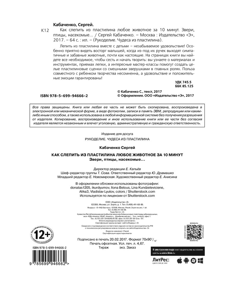💳 Оплатить за товар можно при получении 🇰🇿 Есть бесплатная доставка по Казахстану от 1 дня 🎁 Копите бонусы с каждой покупки Серия: Рукоделие. Чудеса из пластилина Лепить из пластилина вместе с детьми — незабываемое удовольствие! Особенно приятно видеть восторг малышей, когда из-под их ручек выходят симпатичные и забавные животные, почти как настоящие. На страницах книги вы найдете все необходимое, чтобы сесть и начать творить: вы узнаете о материалах и инструментах, приемах лепки, а интересные мастер-классы помогут создать целые пластилиновые сценки со смешными зверушками в главных ролях. Польза совместного с ребенком творчества несомненна, а удовольствие и положительные эмоции гарантированы! |