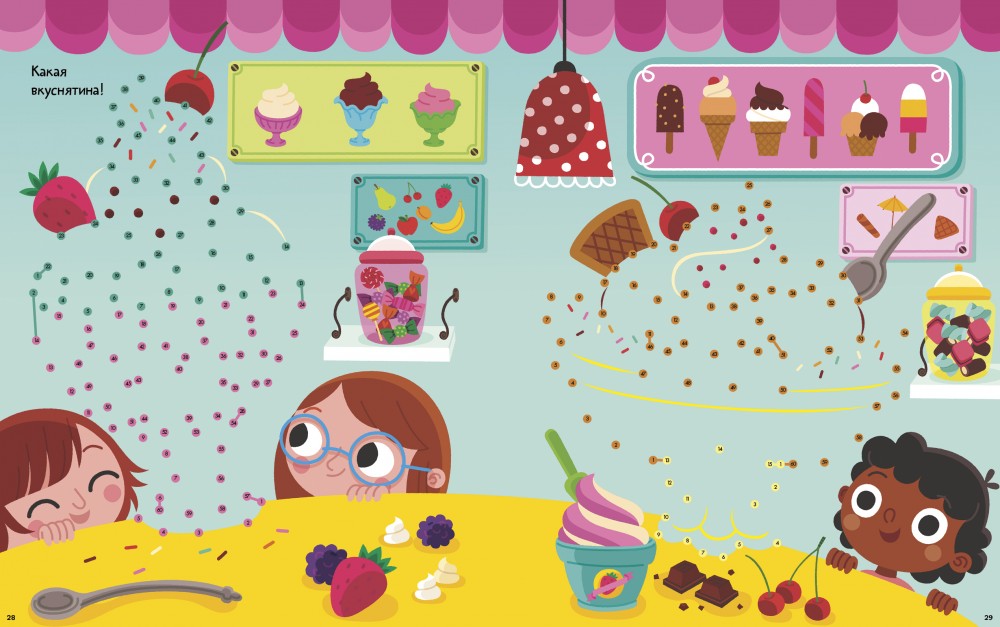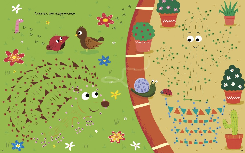 Отличная рисовалка, на каждой страничке очень красочные картинки, нужно обводить по точкам(номерам), чтобы получились персонажи. Очень понравилась, заниматься одно удовольствие. Качество на высоте.