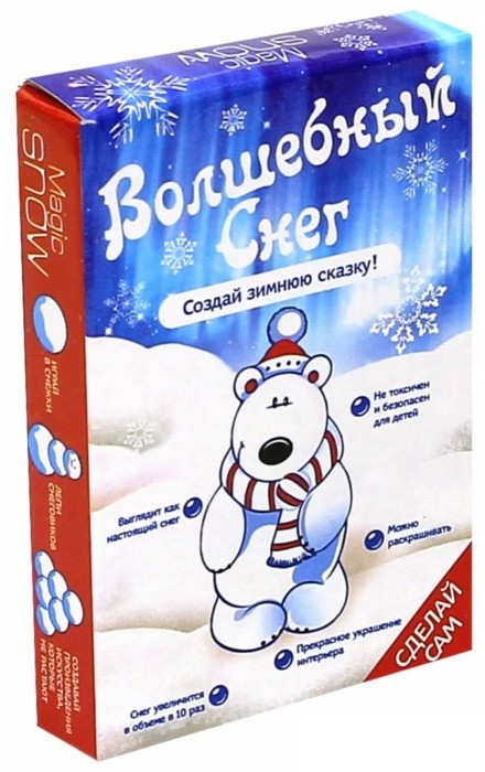 Bumbaram Набор для создания снега «Мишка»В данный момент этот товар отсутствует в продаже. Возможно, у нас найдется аналогичный или похожий товар здесь. Серия: Волшебный снег Наконец-то появился материал, который невероятно похож на настоящий снег! Теперь можно делать декоративные композиции любой сложности, украшать елку и подоконники. Волшебный снег повторяет структуру, мягкость и пластичность настоящего снега. Это искусственный полимер, который часто используют для съемки фильмов или зимних сцен внутри помещений. |