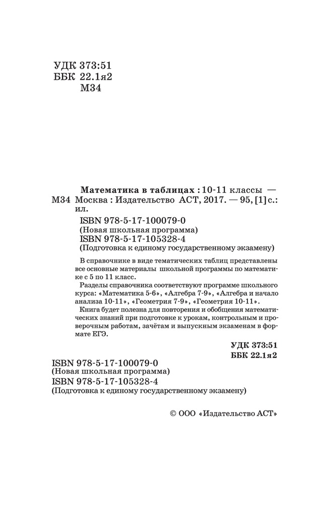 ЕГЭ. Математика. 10-11 классы. Справочное пособие в таблицахВ данный момент этот товар отсутствует в продаже. Возможно, у нас найдется аналогичный или похожий товар здесь. В справочнике в виде тематических таблиц представлены все основные материалы школьной программы по математике с 5 по 11 класс.Разделы справочника соответствуют программе школьного курса: «Математика 5 — 6», «Алгебра 7 — 9», «Алгебра и начало анализа 10 — 11», «Геометрия 7 — 9», "Геометрия 10 — 11".Книга будет полезна для повторения и обобщения математических знаний при подготовке к урокам, контрольным и проверочным работам, зачётам и выпускным экзаменам в формате ЕГЭ. |