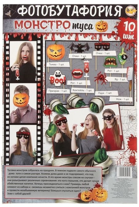 Набор фотобутафории «Хэллоуин!»В данный момент этот товар отсутствует в продаже. Возможно, у нас найдется аналогичный или похожий товар здесь. Ни один праздник не обходится без фотографий. Чтобы они стали ещё ярче, веселее и памятнее, нужно задуматься о создании особого образа. Эти праздничные аксессуары сделают снимки искренними и полными радости. Подарите себе и близким больше положительных эмоций и памятных мгновений с помощью набора праздничных аксессуаров! |
