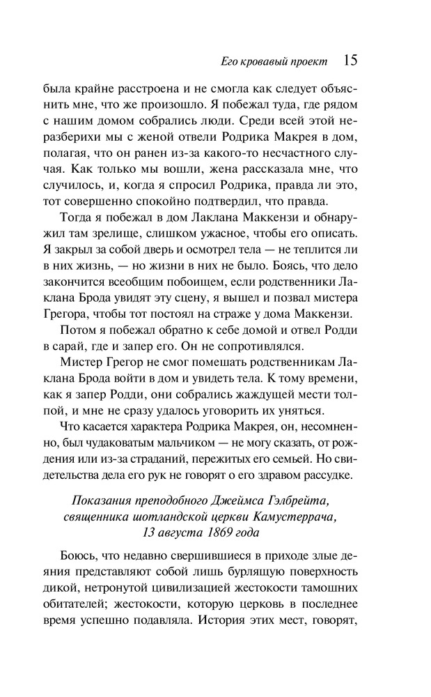 Его кровавый проектВ данный момент этот товар отсутствует в продаже. Возможно, у нас найдется аналогичный или похожий товар здесь. Серия: Букеровская премия. Обладатели и номинанты Шотландия, 1869 год. Жуткое тройное убийство, происшедшее в отдаленной сельской общине в Хайленде, закончилось арестом 17-летнего юноши по имени Родрик Макрей. Из его личных дневников абсолютно ясно, что он виновен в этом преступлении. Но они же привлекли к себе внимание лучших юристов и психиатров страны, стремящихся выяснить, что именно заставило Макрея совершить этот чудовищный акт насилия. Безумен ли он? Впрочем, для суда дело уже фактически решено. И один лишь адвокат, изо всех сил старающийся спасти своего подопечного, стоит сейчас между Родриком и виселицей... |