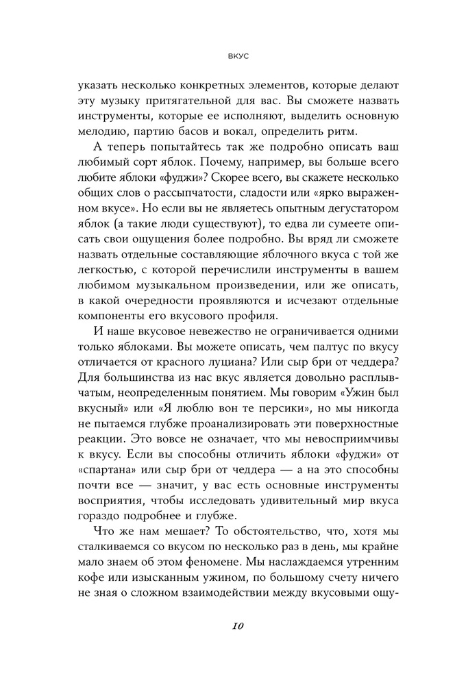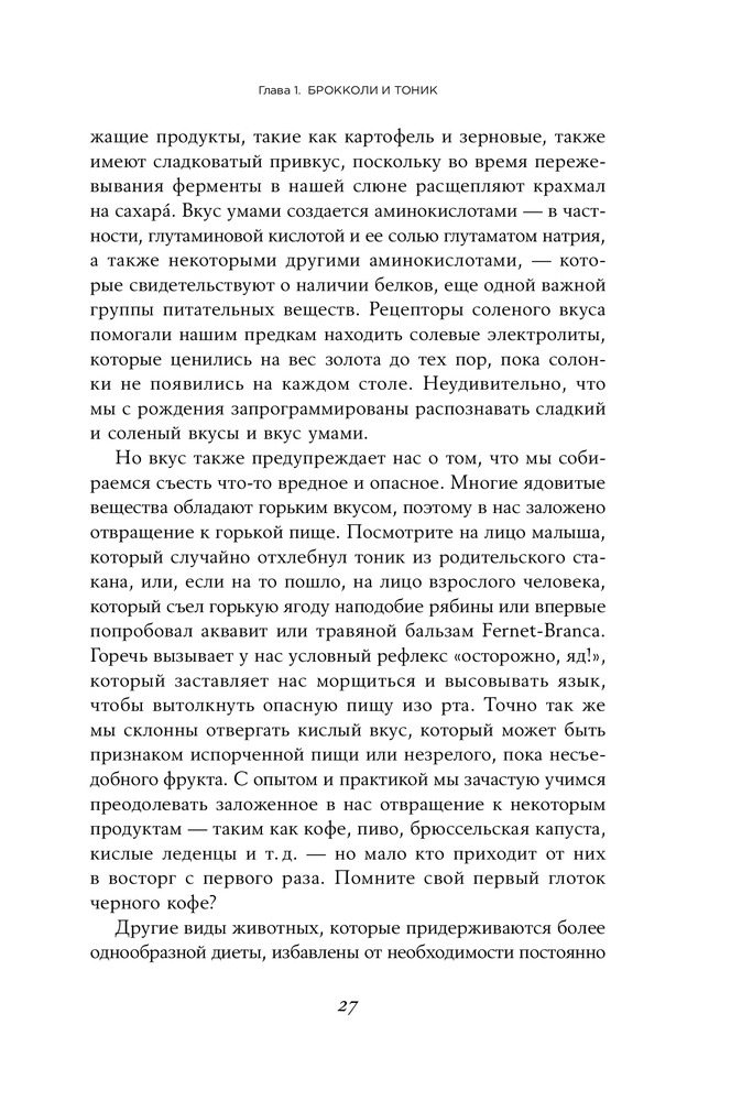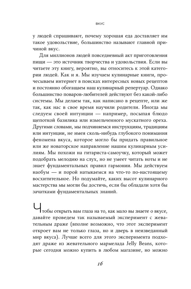 Вы никогда не задумывались, почему пиво так хорошо сочетается с солеными орешками? Ученые знают ответ: соленый вкус подавляет горький, поэтому орешки смягчают пивную горечь и позволяют проявиться другим вкусам. Зная этот принцип, вы можете применять его самими разными способами. Наука о вкусе полна подобных наблюдений, но они мало кому известны. Мы редко изучаем свой вкусовой опыт и не знаем, как о нем говорить и думать. |